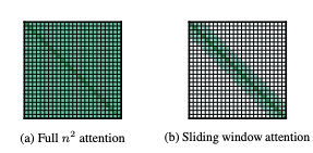 Great analysis of what actually happens to the receptive field when stacking SWA layers. SWAs are a popular method to reduce attention computation to . Assuming a context length , instead of attending to every position in the sequence, we shorten the "window" to meaning each position only sees the last W positions. The idea is that stacking these layers creates a sliding window that in theory can capture information from the entire context because the receptive field is .