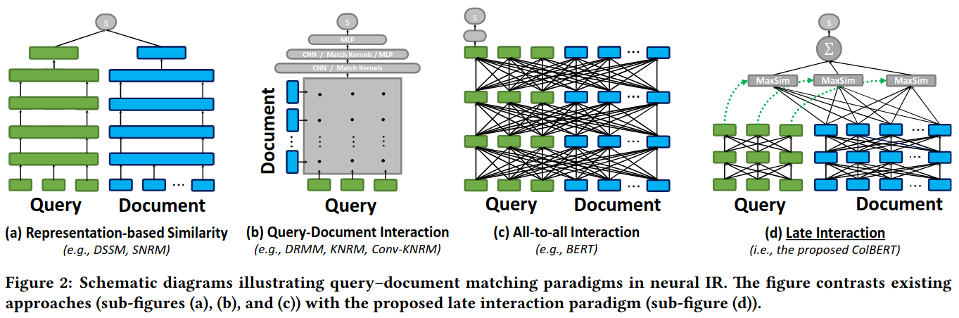 To see why VLMs are impactful here, it helps to have a mental model of neural matching. The 2020 ColBERT paper is a good anchor for the main paradigms.
